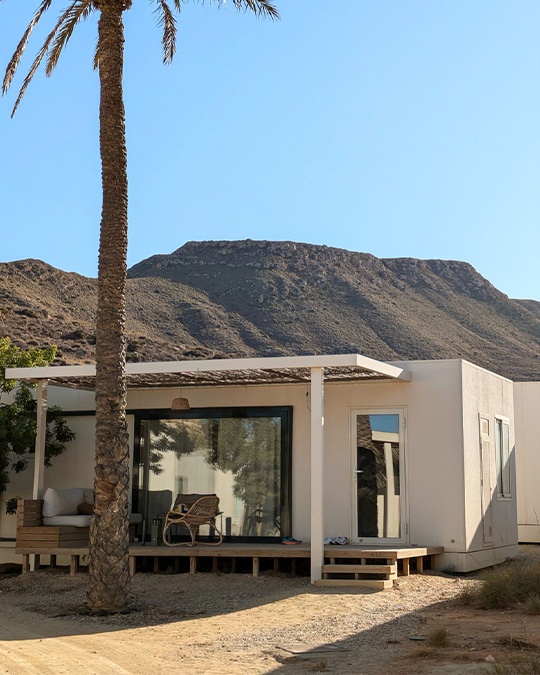 Dormimos en casitas de 2 habitaciones, las mas cómodas y cercanas a la playa. Cada Home dispone de baño, cocina, salón y terraza.